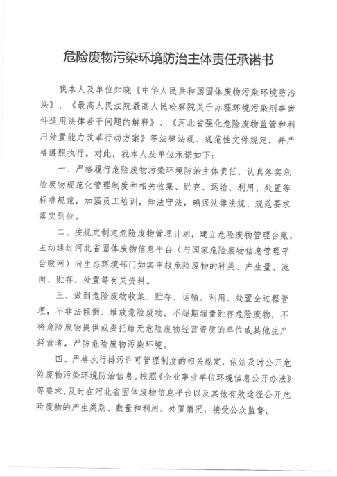 河北航科工程檢測設(shè)備技術(shù)有限公司危險(xiǎn)廢物污染環(huán)境防治主體責(zé)任承諾書。